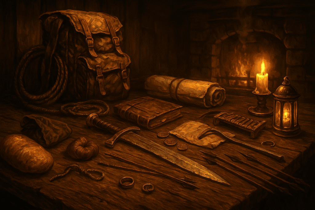 - Scholar’s Pack: Books, ink, parchment — ideal for wizards and loremasters.